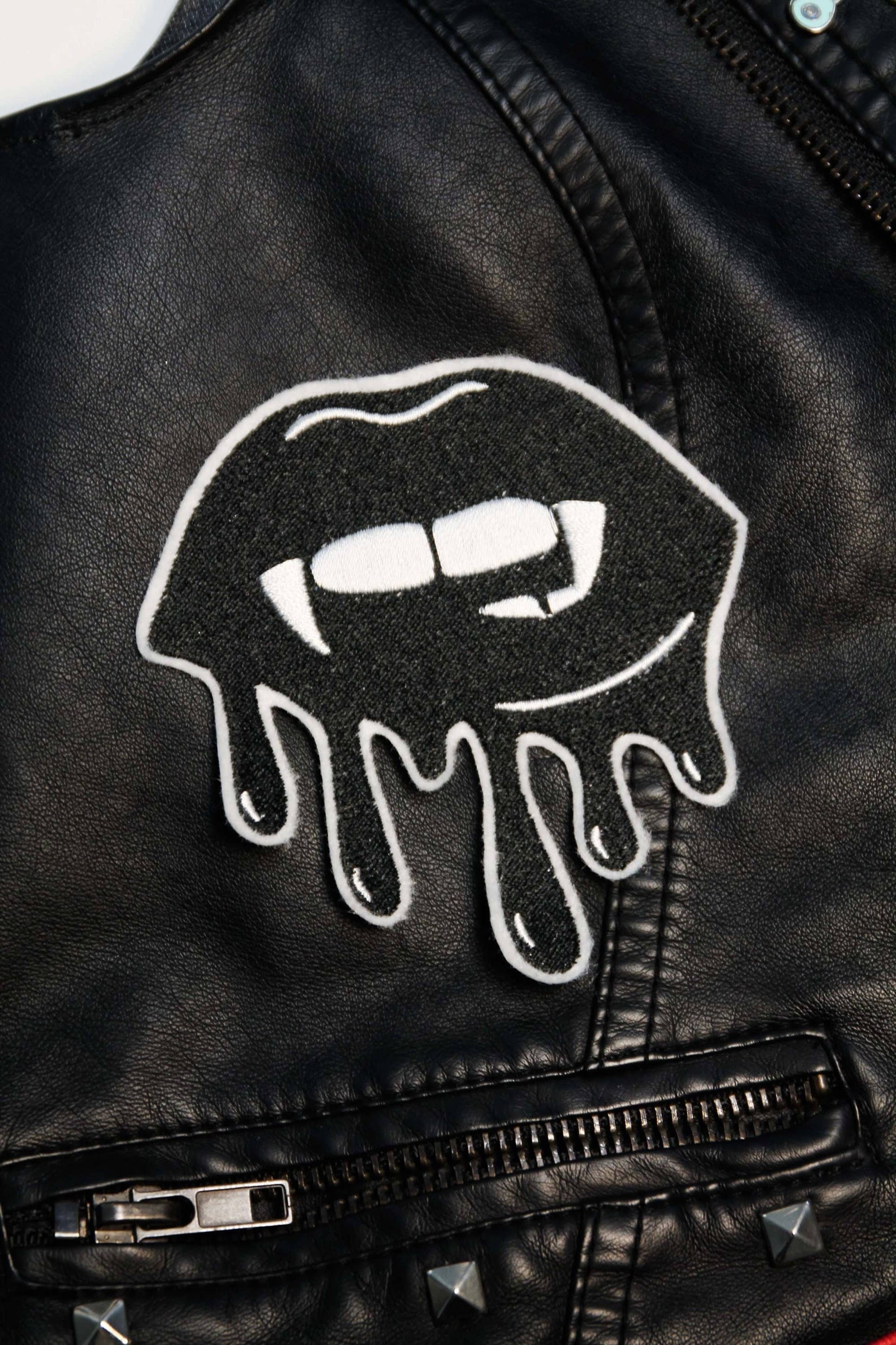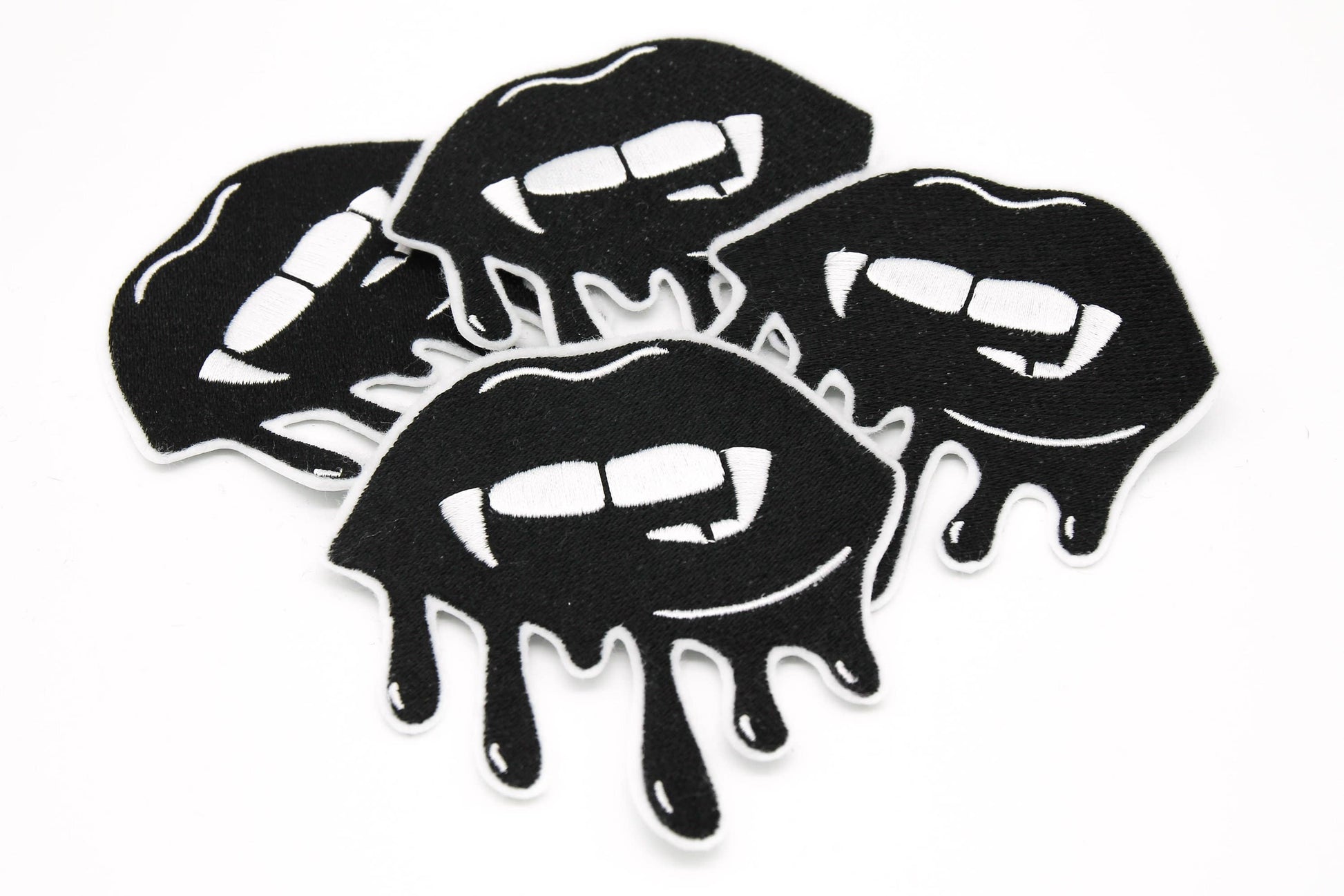 Black Bloody Vampire Kiss Embroidered Iron on Patch
