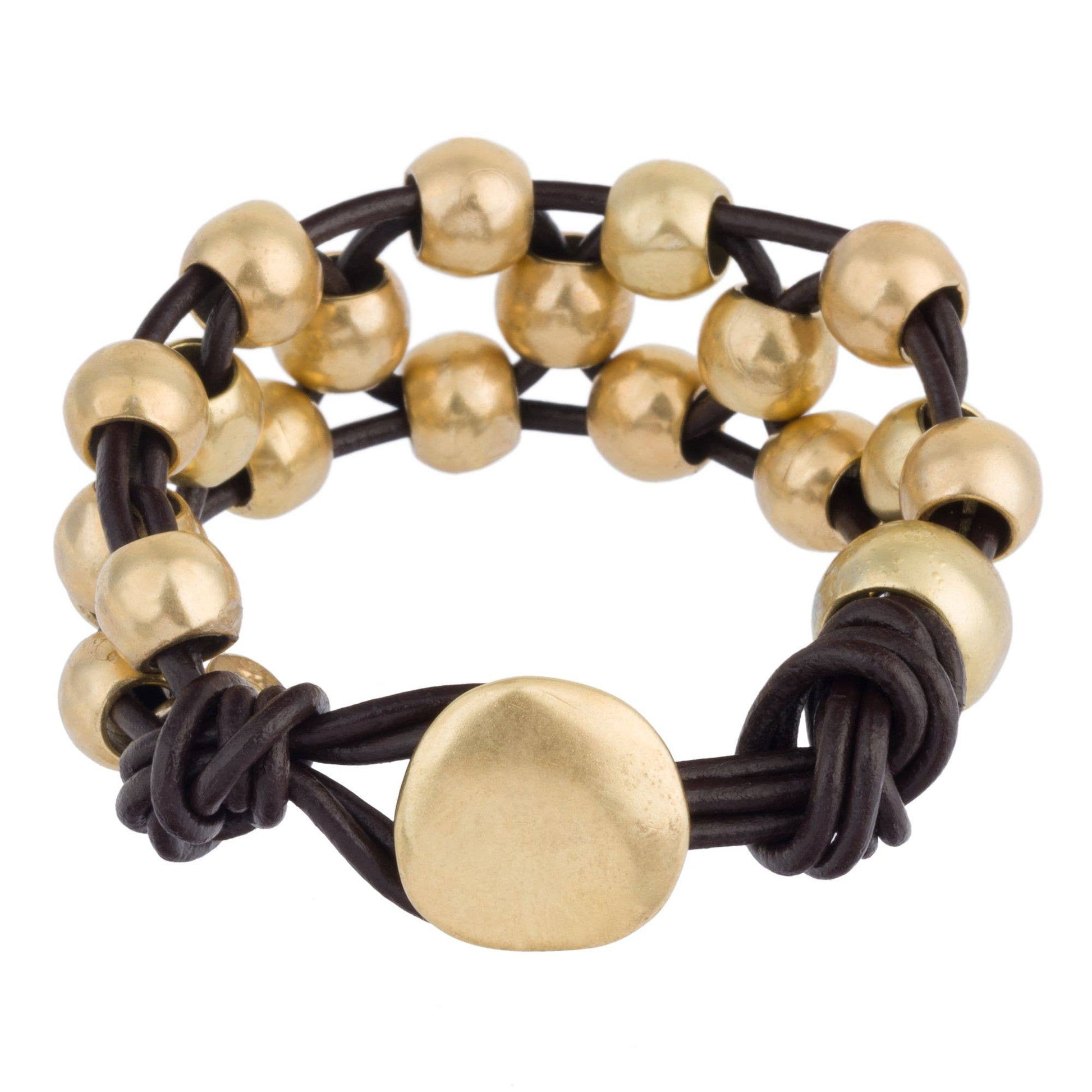 Vergulde Zamak Armband met Leder en Metaal - Gemaakt in Spanje